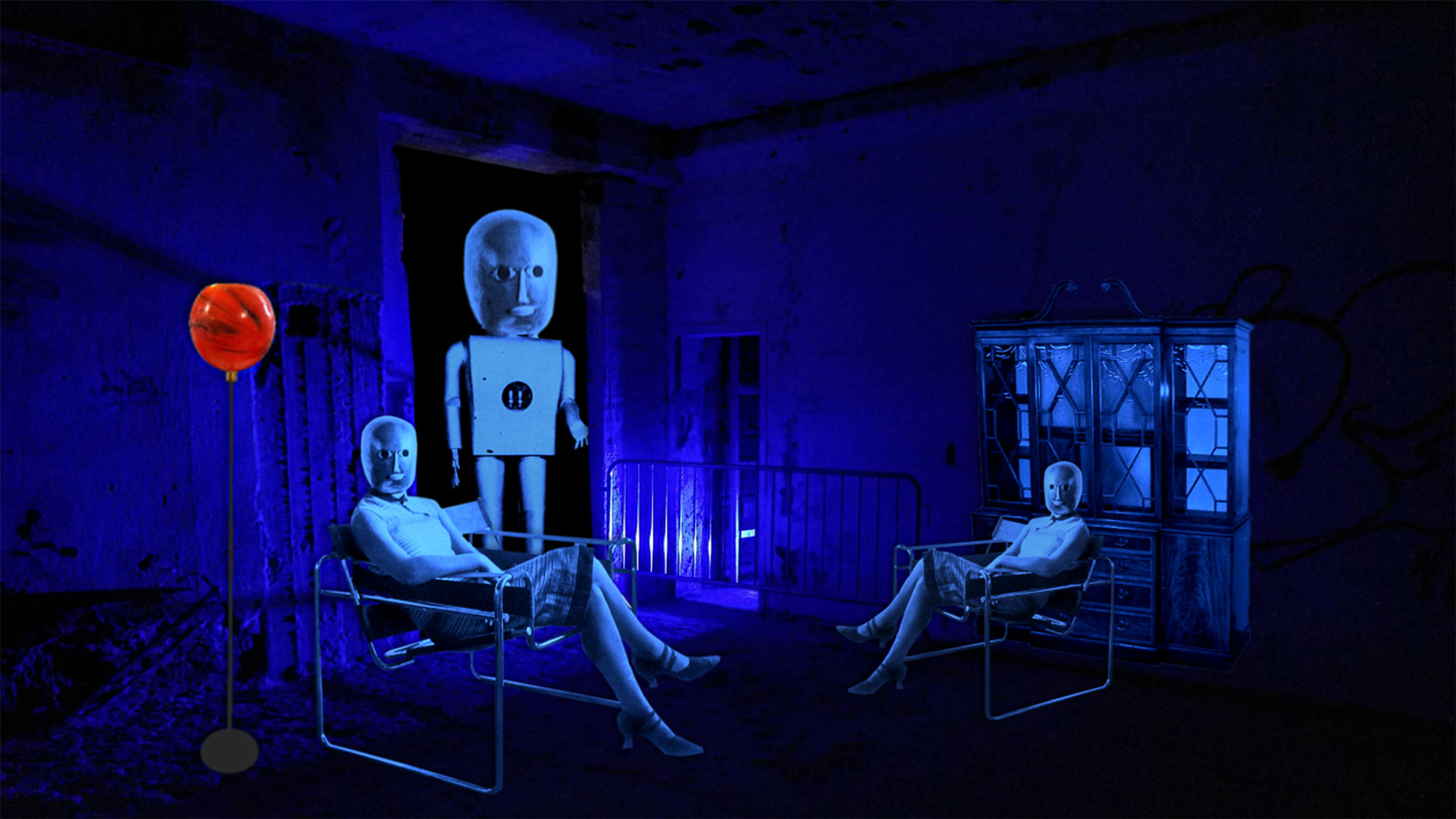 Family Idyll is a still from the ninth part of a series of interconnected surrealist animated films, created using the technique of animated collage, collectively titled “ETC.”