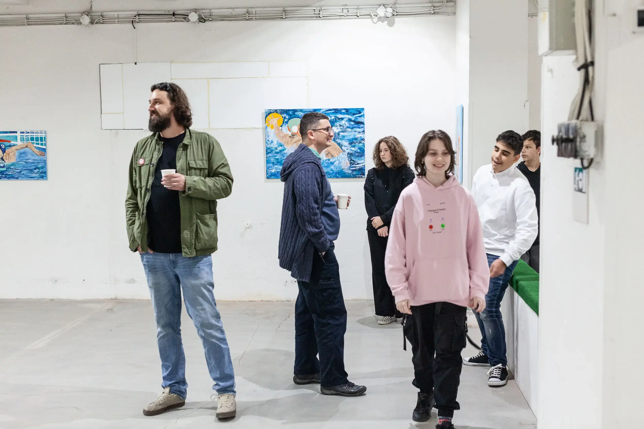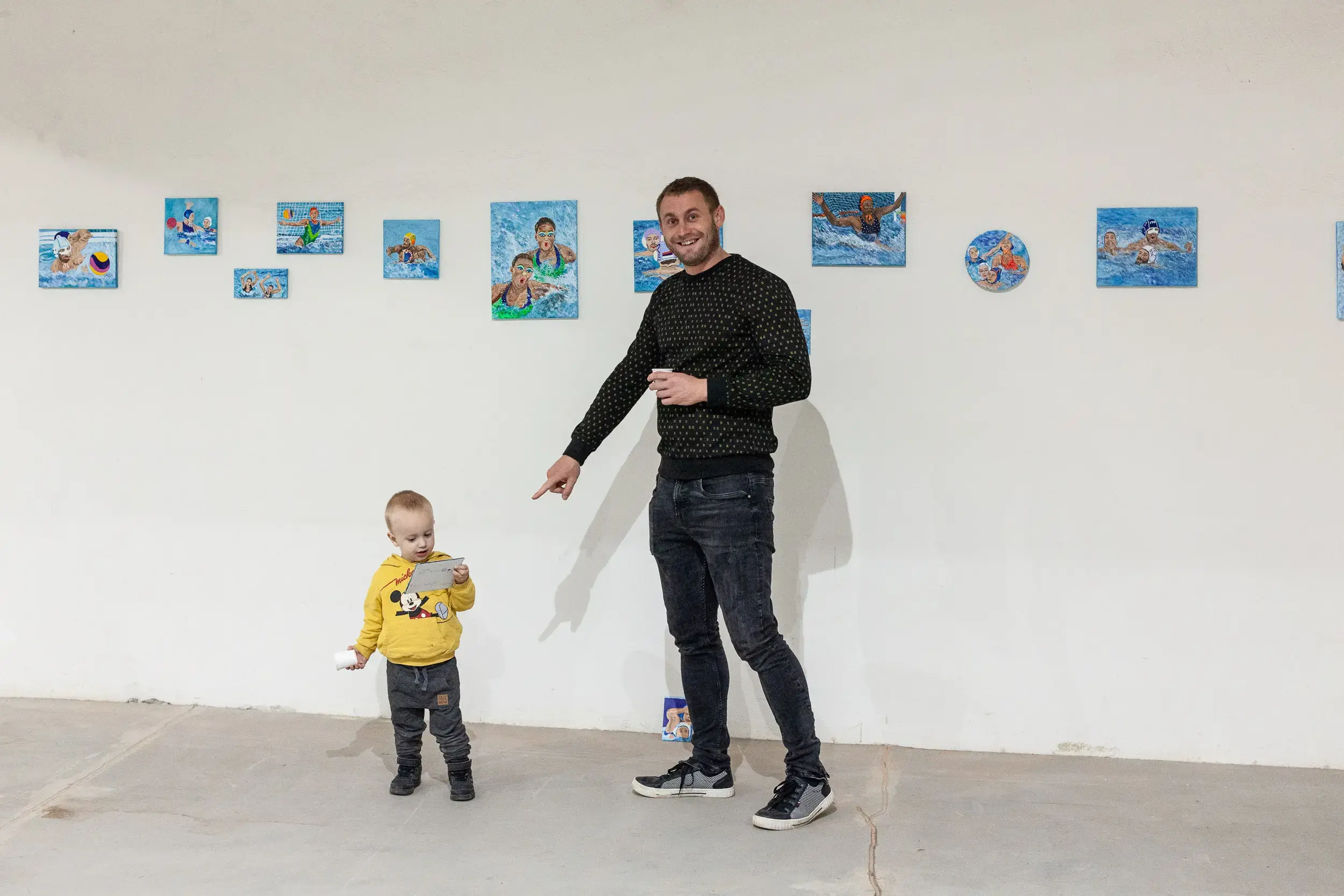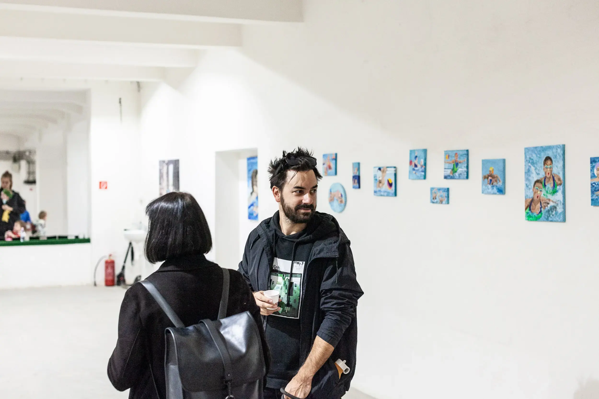 Naďa Koyšová graduated in painting from the Academy of Arts in Banská Bystrica. In her latest series of paintings, she explores the unconventional theme of water polo, inspired by her participation in the Hala symposium held in the former Merina textile factory complex. It was there that she created her first painting featuring a swimming pool, which later evolved into a broader focus on various water sports.